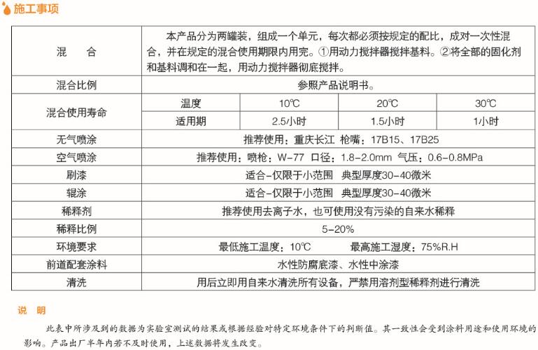 产品有效贮存期12个月,贮存在阴凉通风处,贮存温度:5-35℃。运输时防严寒、日光暴晒和雨淋。(施工前固化剂切不可与水接触)